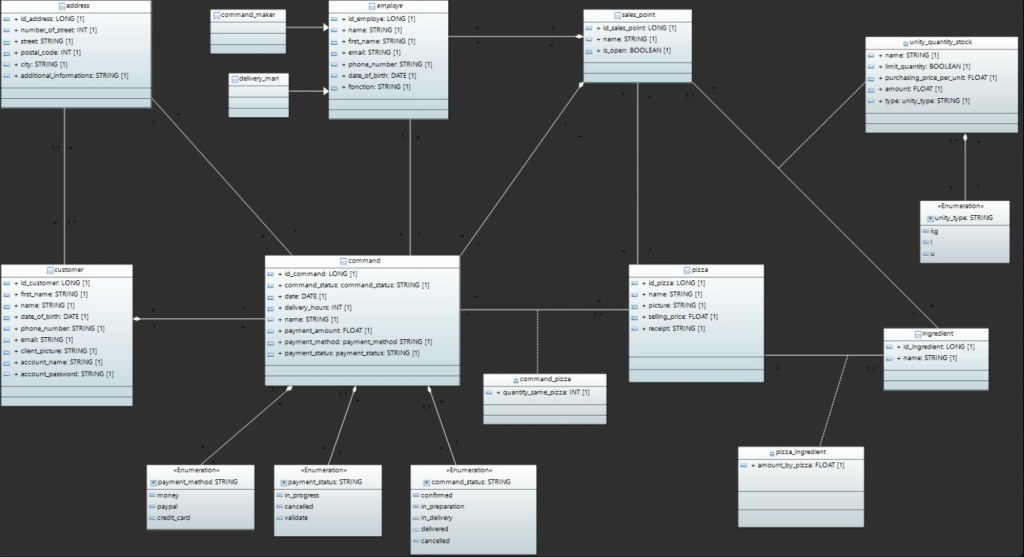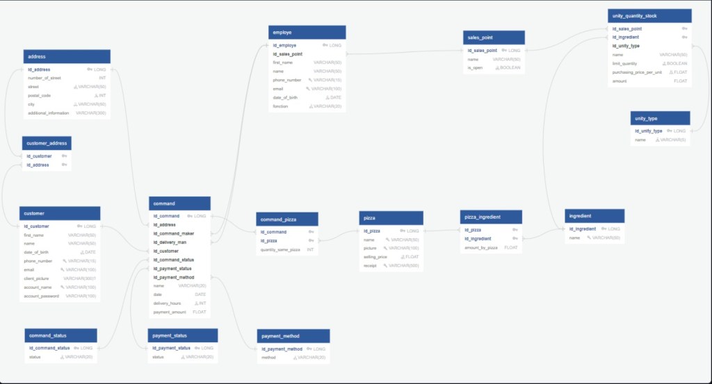 A technical design project aimed at defining a complete management system for a fast-growing group of pizzerias. Designed to support the expansion of a multi–point-of-sale restaurant network, the solution focuses on order management, ingredient stock tracking, and online customer ordering, while ensuring scalability across all pizzerias.
