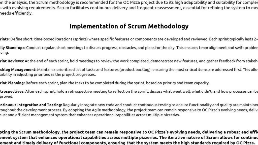 Scrum-based methodology with defined roles, iterations, milestones and quality assurance processes.